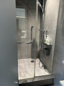 ロッカーの場所に洗面台とシャワールームがありドライヤーもあります