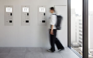 個人情報を入力するとカードが出てきてそのカードをかざすと自動ドアが開きます